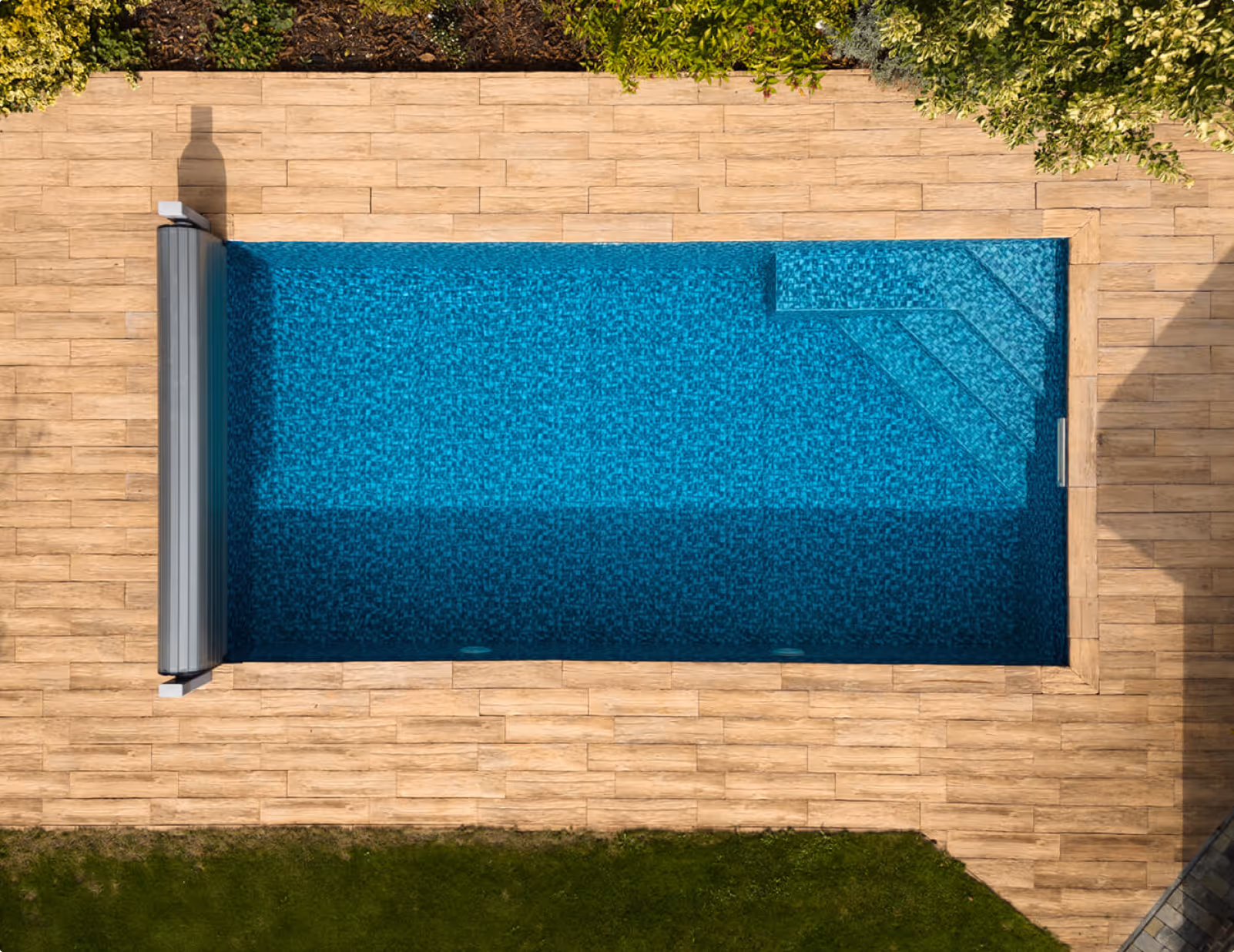 - Zvýrazní tvar, hloubku a design bazénu